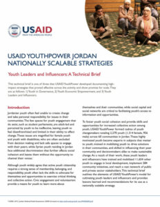 This technical brief is one of three that USAID YouthPower developed documenting high- impact strategies that proved effective across the activity and show promise for scale. They are as follows: 1) Youth in Governance, 2) Youth Economic Empowerment, and 3) Youth Leaders and Influencers.